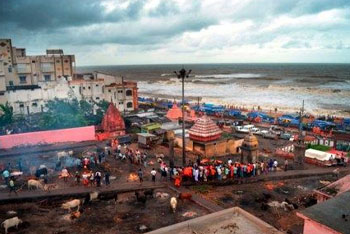 Puri is known by several names since the ancient times, and was locally known as "Shrikhetra" and Lord Jagannath temple is known as "Badadeula". Puri and the Jagannath Temple were invaded 18 times by Hindu and Muslim rulers, from the 4th century AD till the early 19th century with the objective of looting the treasures of the temple. Puri is a city and a municipality in the state of Odisha in eastern India. It is the district headquarters of Puri District and is situated on the Bay of Bengal, 60 kilometres (37 mi) south of the state capital of Bhubaneswar. It is one of the original Char Dham pilgrimage sites for Hindus. Puri is the spiritual capital of Odisha, known as a pious city filled with noted temples.